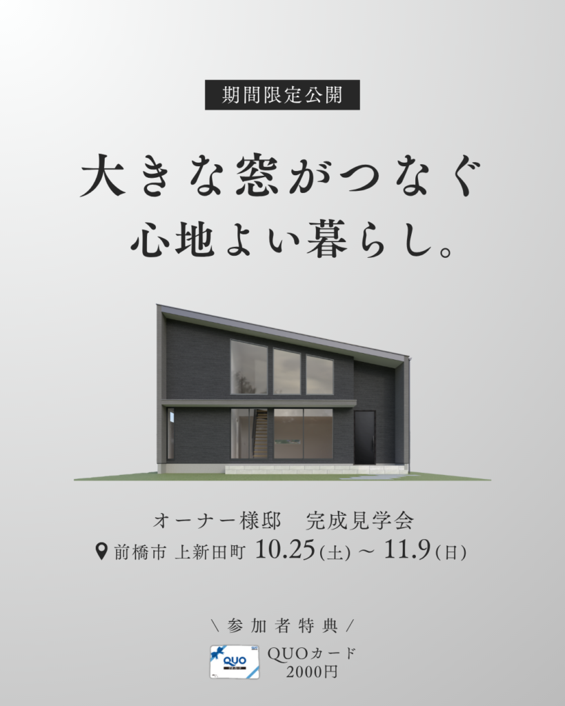 【10/25~11/9限定】大きな窓が繋ぐ心地よい家完成見学会