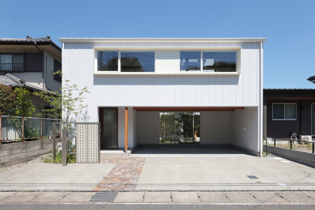中庭を囲む自然素材のガレージハウス(昼)