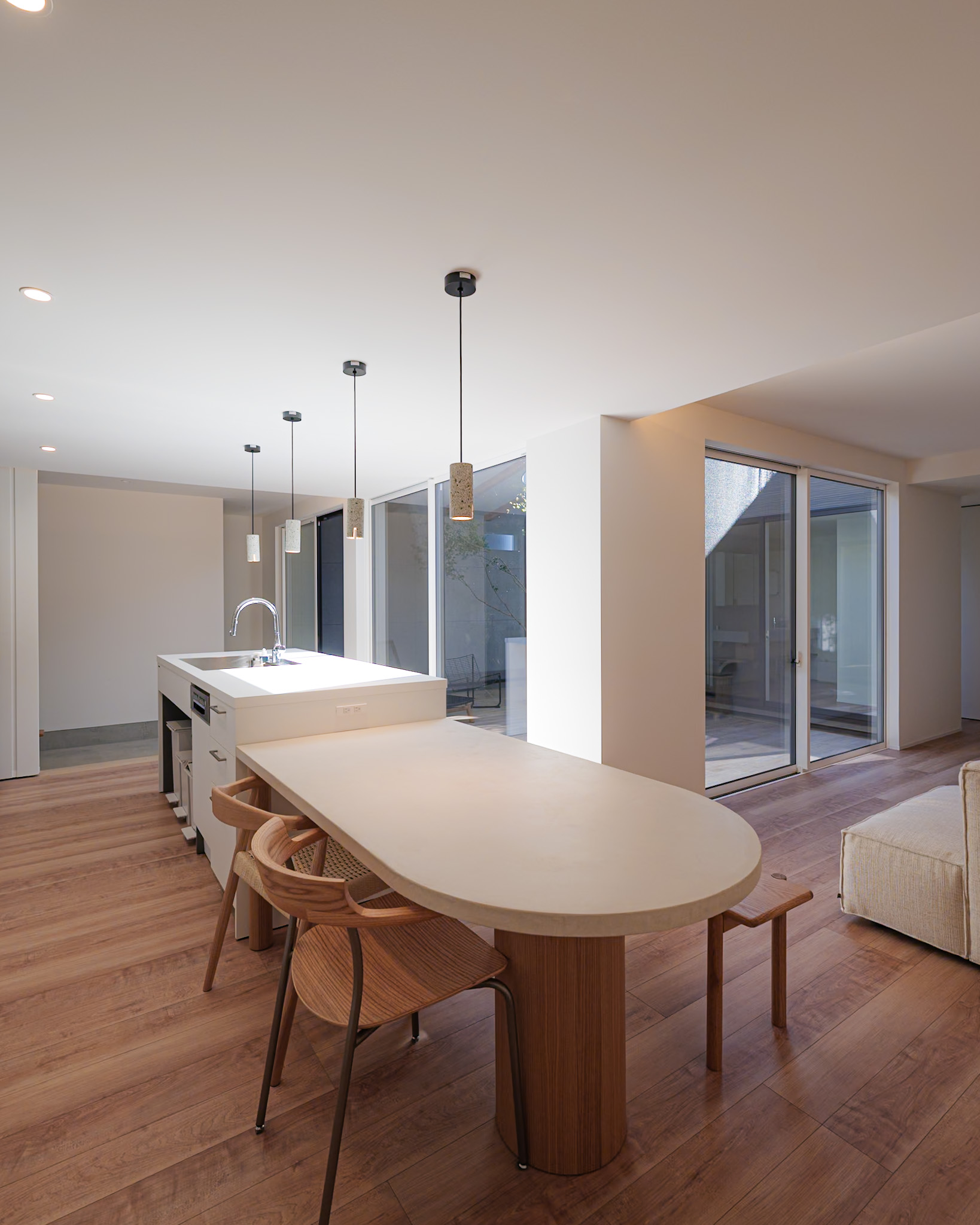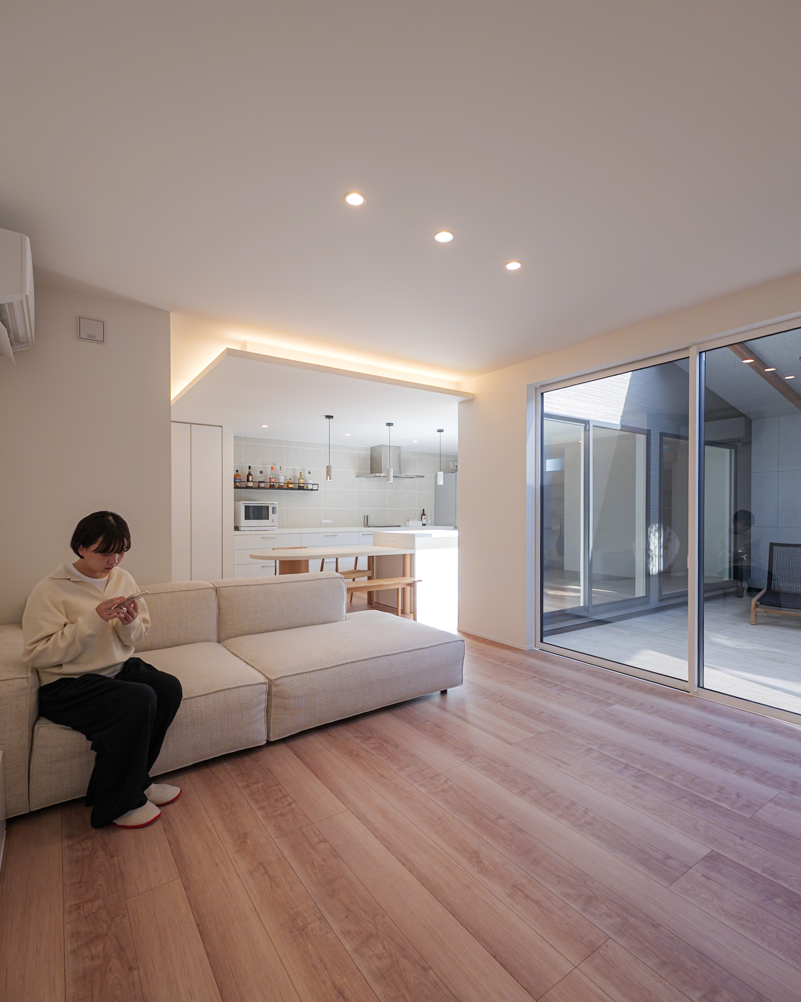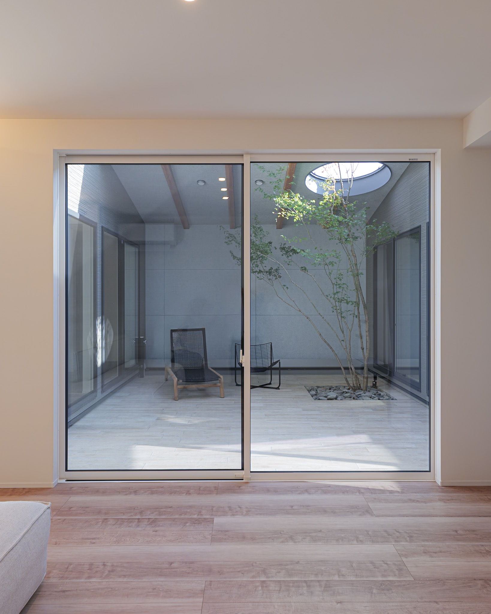 • 中庭で繋がる、白と自然素材が調和するプライベート空間