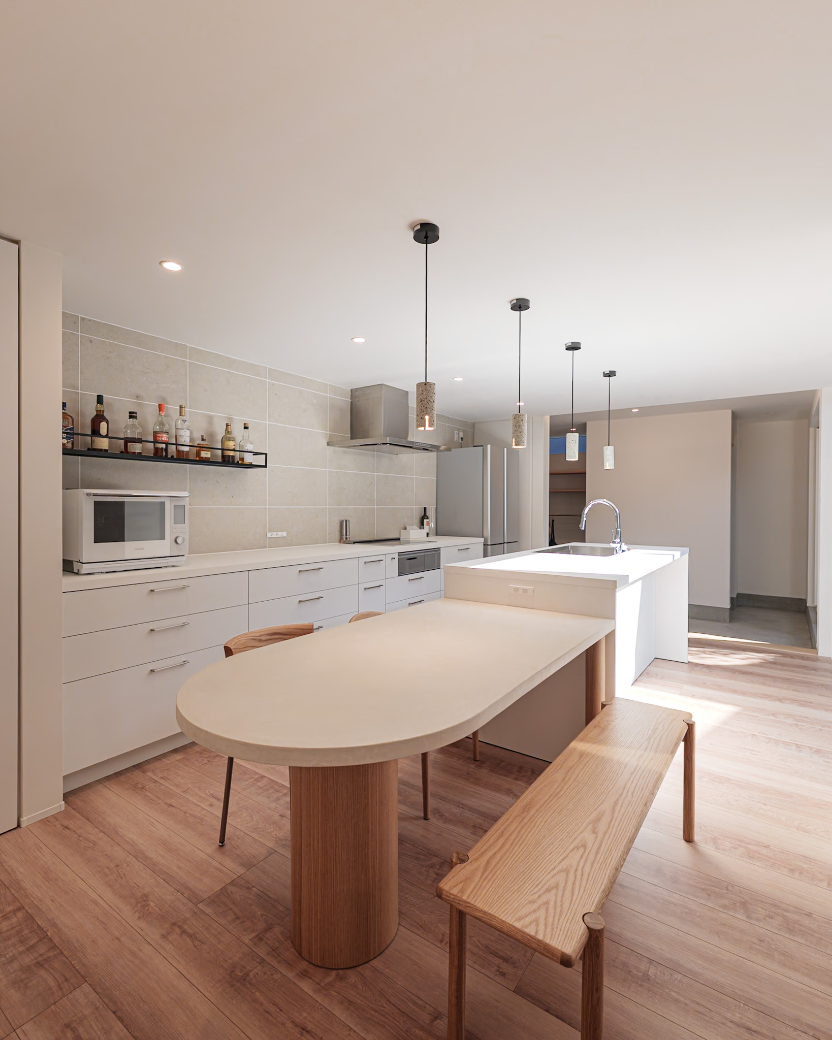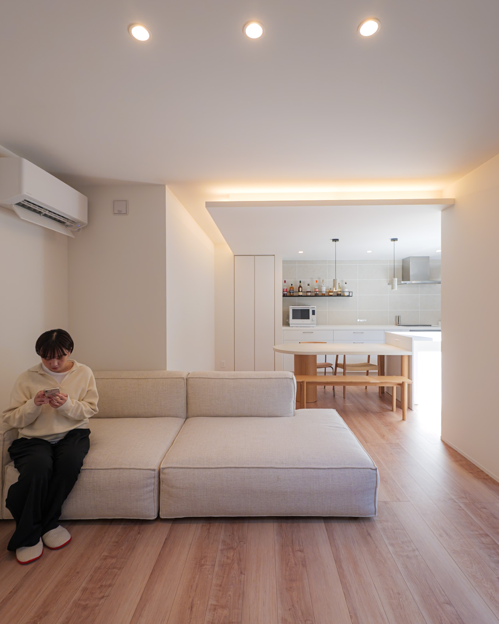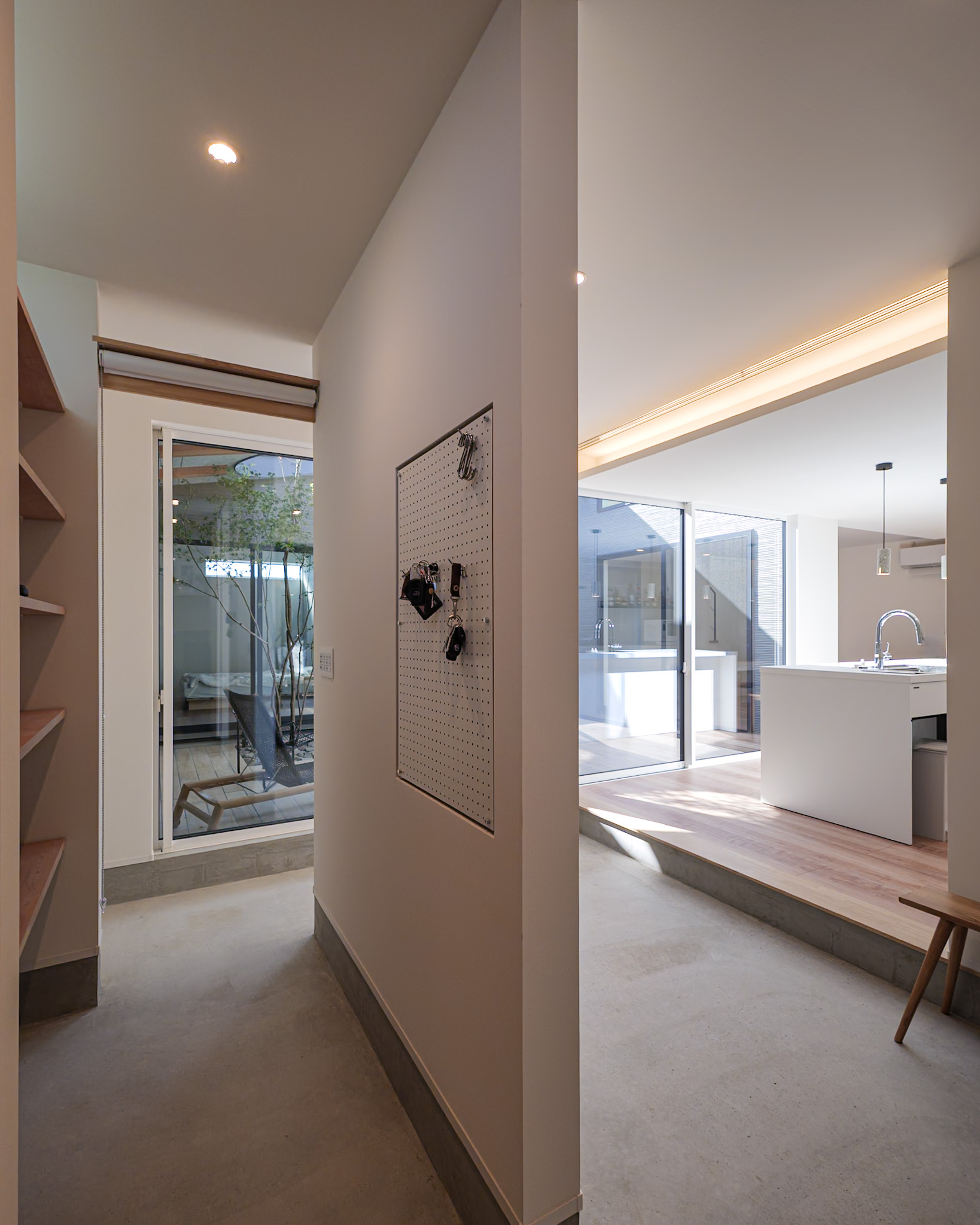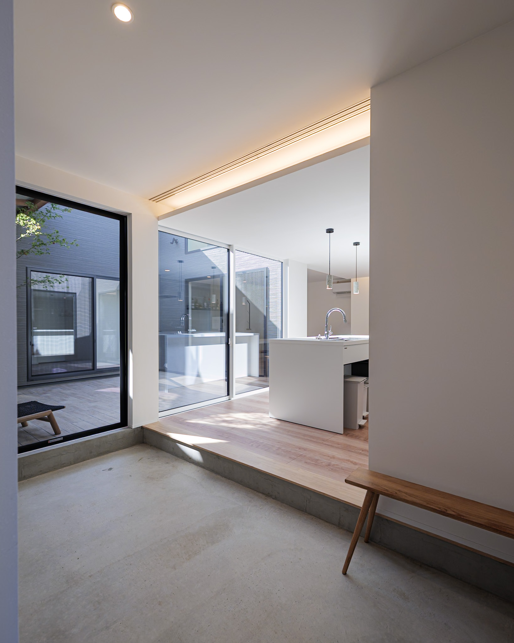 • 中庭で繋がる、白と自然素材が調和するプライベート空間